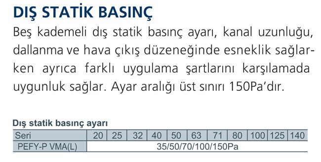 Beş Kademeli Dış Statik Basınç Ayarı